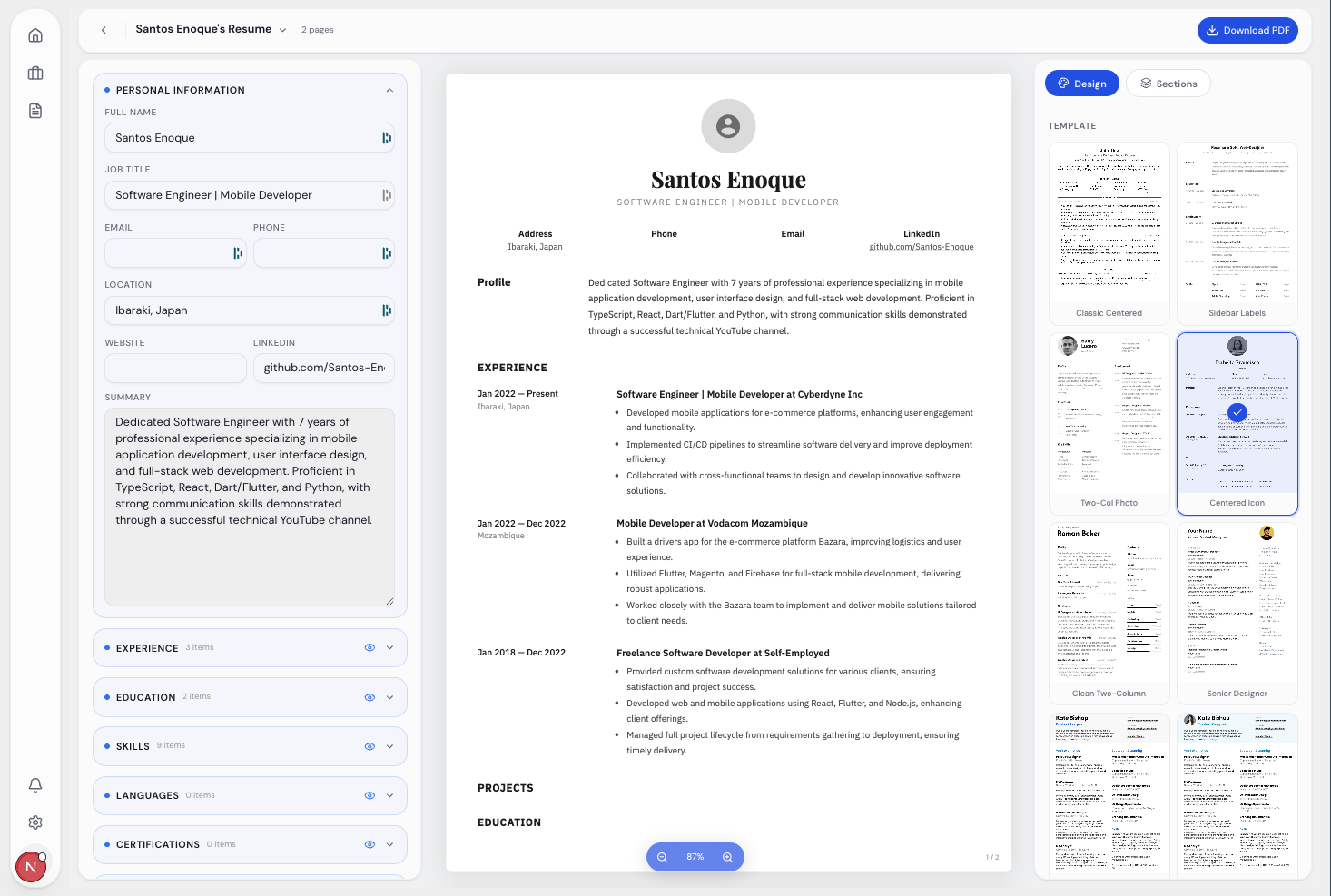 Escolha templates de currículo projetados por especialistas, otimizados para ATS e padrões modernos de contratação.